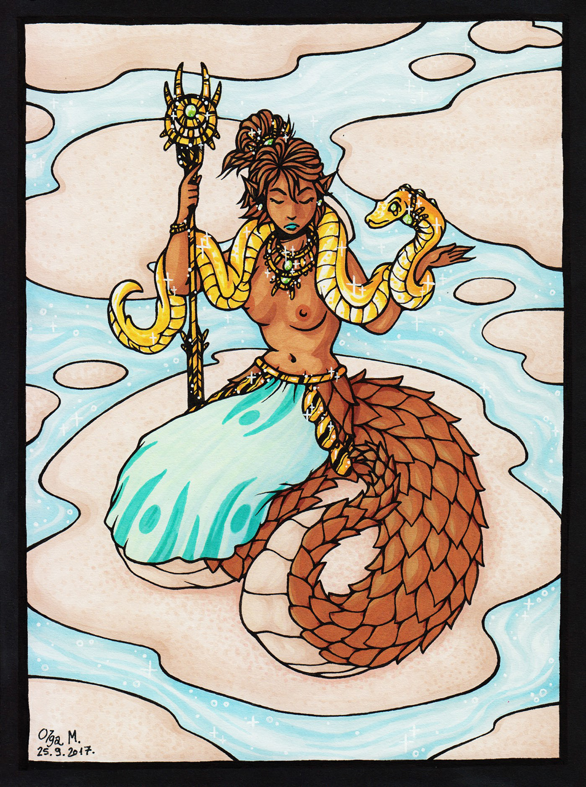 - Tehnika: Rapidograf Marker Zlatni flomaster